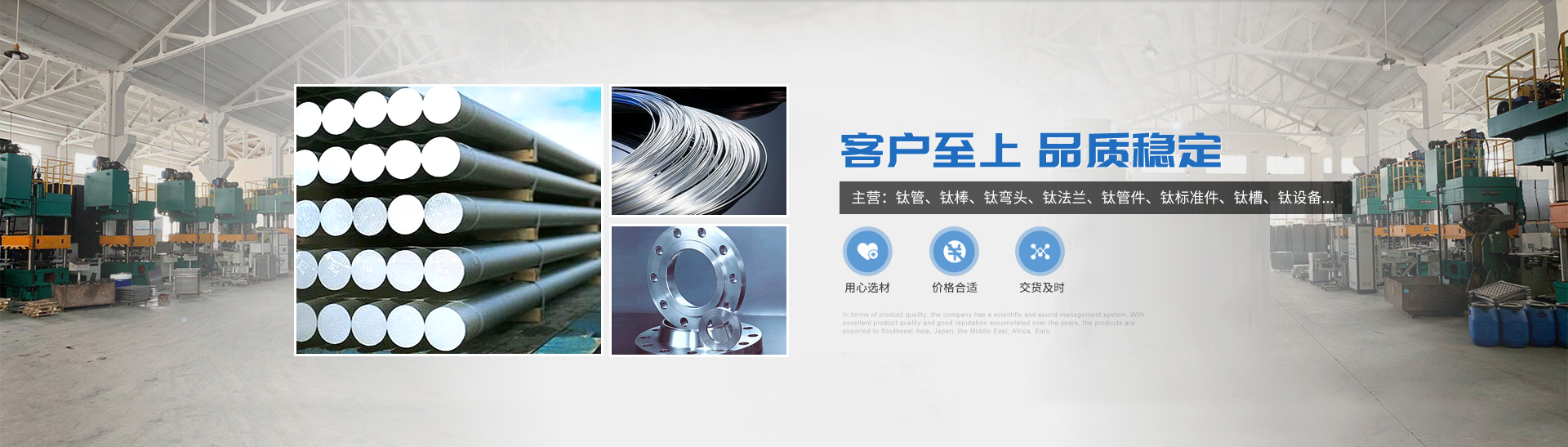 本公司的主營產(chǎn)品鈦制品有,鈦管,鈦棒,鈦彎頭,鈦法蘭,鈦管件,鈦標(biāo)準(zhǔn)件,鈦槽,鈦設(shè)備,鈦沖壓彎頭等